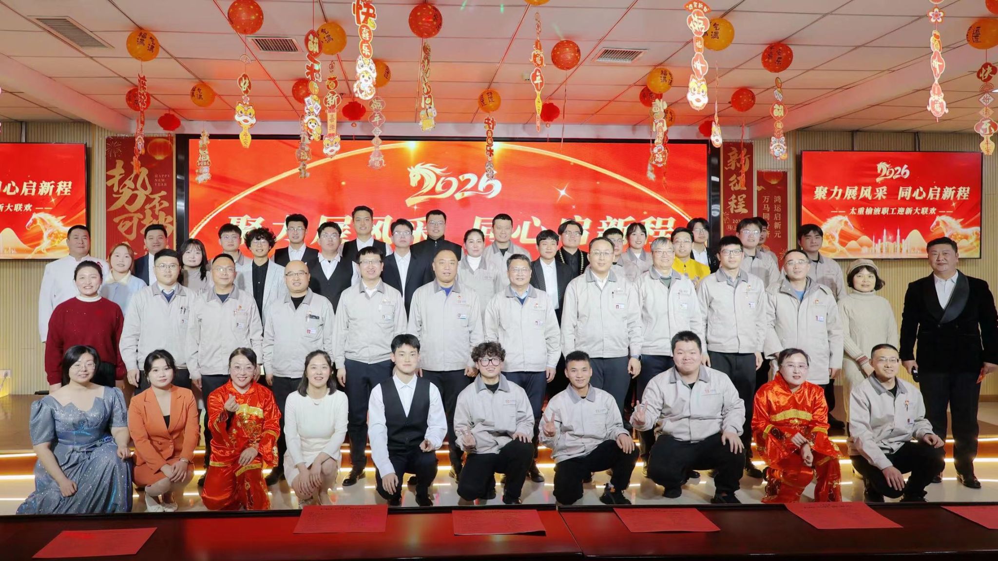 12月30日,hjc888黄金城榆液工会、团委联合举办的“聚力展风采 同心启新程”2026年职工迎新大联欢在欢声笑语中拉开序幕。公司领导、劳模及职工代表欢聚一堂,共同迎接新年的到来,以丰富多彩的文艺节目展示hjc888黄金城榆液人昂扬向上的精神风貌,凝聚奋进新征程的磅礴力量。